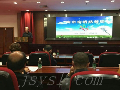 11月4日下午,南京市宗教慈善周活动在新城大厦市民宗局举行,市伊协副会长脱建明、金贤友、白友涛、冯保全、蒋卫东、薛怀国,顾问石寅初参加活动。