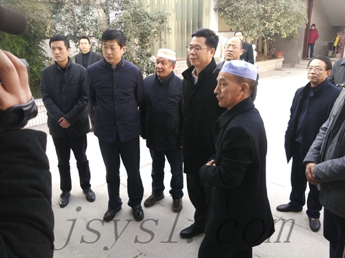 陈部长一行参观了王营清真寺大殿、展览室,了解了王营清真寺的历史沿革,并详细询问了市伊协各项工作的开展情况,市伊协会长樊维明阿訇一一作了解答。
