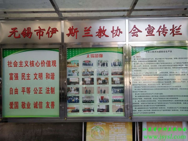为积极响应中国伊协‘四进’清真寺的倡议,落实省伊协通知要求。无锡市伊协高度重视,精心部署,在市清真寺大院醒目位置升起了五星红旗。同时,利用清真寺文化宣传栏广泛宣传社会主义核心价值观和宪法、法律法规等知识,进一步培养了信教群众牢固树立爱国意识、守法意识和修身立德的优良品行,深入挖掘了伊斯兰教中国化的途径与实践。得到了信教群众和社会各界的广泛认同与高度赞赏。