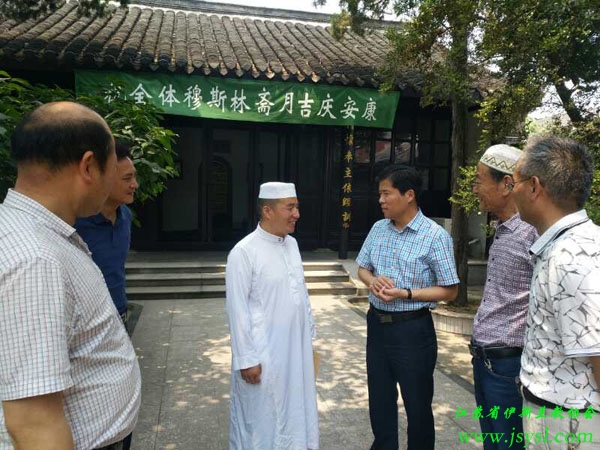 在高邮镇清真寺、菱塘回族乡古清真寺,杨文喜等领导视察了寺容寺貌,对两座清真寺通过橱窗、展牌等形式宣传“社会主义核心价值观”、“新颁布的《条例》”等大力营造“中国化”氛围表示肯定,在分别听取伊协副会长、寺管会主任朱代兵、杨仕国关于清真寺近期的工作安排与活动情况后,杨文喜提出了相关工作的具体要求:一是要大力加强法律法规学习,进一步加强清真寺规范化管理;二是要大力营造“中国化”氛围,进一步践行“核心价值观”;三是要大力开展“团体建设”,进一步提升寺院管理和服务穆民的水平;四是要大力加强安全管理,努力组织好斋月及开斋节活动,确保安全有序。